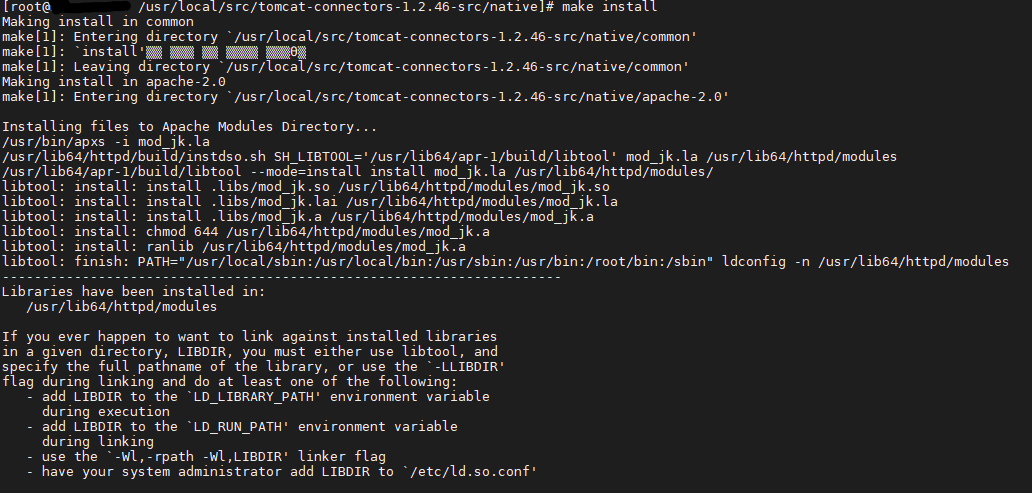 yum install autoconf yum install libtool yum -y install gcc gcc-c++ httpd-devel해당 위치로 이동 후 cd /usr/local/src/tomcat-connectors-1.2.46-src/native/
