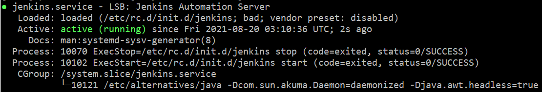 #jenkins start systemctl start jenkins #jenkins stop systemctl stop jenkins #jenkins status systemctl status jenkins