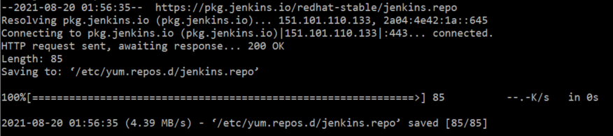 sudo wget -O /etc/yum.repos.d/jenkins.repo https://pkg.jenkins.io/redhat-stable/jenkins.repo sudo rpm --import https://pkg.jenkins.io/redhat-stable/jenkins.io.key yum install -y jenkins